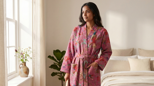 Handcrafted cotton robes for everyday comfort — slow mornings, post-shower ease, cozy evenings.