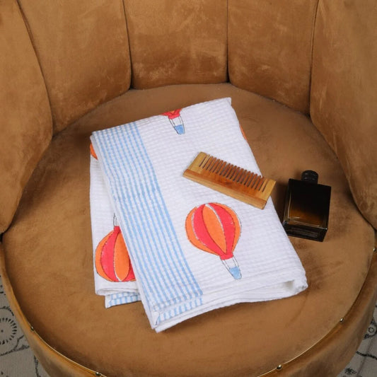 Hot Air Balloon Block Print Cotton Waffle Bath Towel