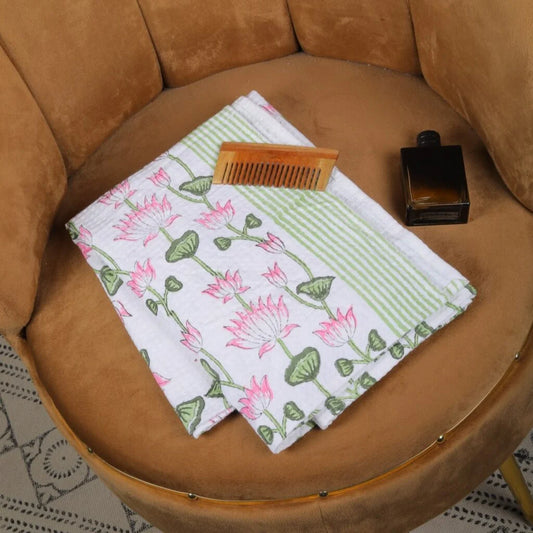 Lotus Block Printed Cotton Waffle Towel